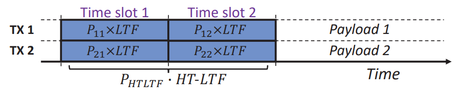 [^2]: 논문에서는 $P_{HTLTF}$라고 되어 있고, 실제 옛날 표준에서 도 그렇게 칭했으나, 최신 표준에서는 $P_{HT-LTF}$로 표기가 변경되었다.