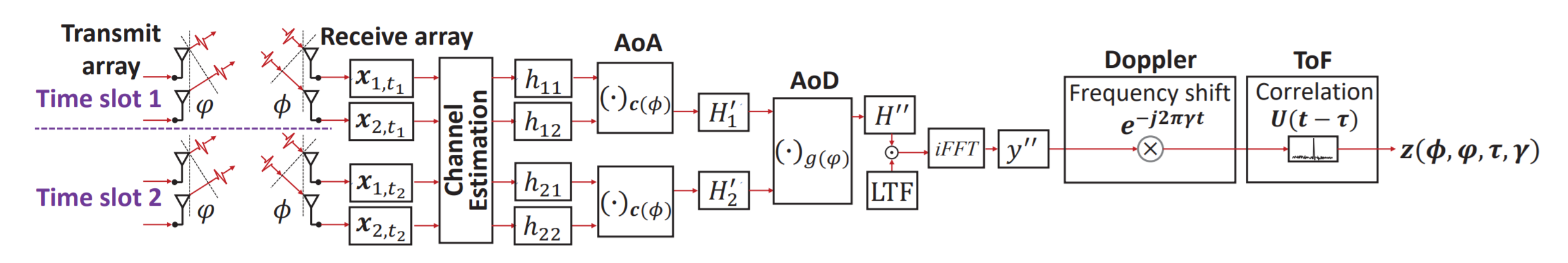 AoA와 AoD를 주파수 영역에서 구하고, 도플러 효과, ToF와 Amplitude Attenuation은 시간 영역에서 구하게 된다.