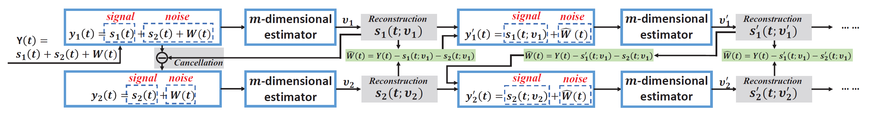 하지만 여기까지만 하면 여전히 $s_l(t)$가 서로 겹쳐 있어서 상당히 부정확하게 $s_l(t)$이 뽑힌다고 한다. 그래서 나온 것이 한번 더 신호를 뽑아내는 것이다. 즉, 모든 $s_l(t)$에 대해 아래의 계산을 진행한다.