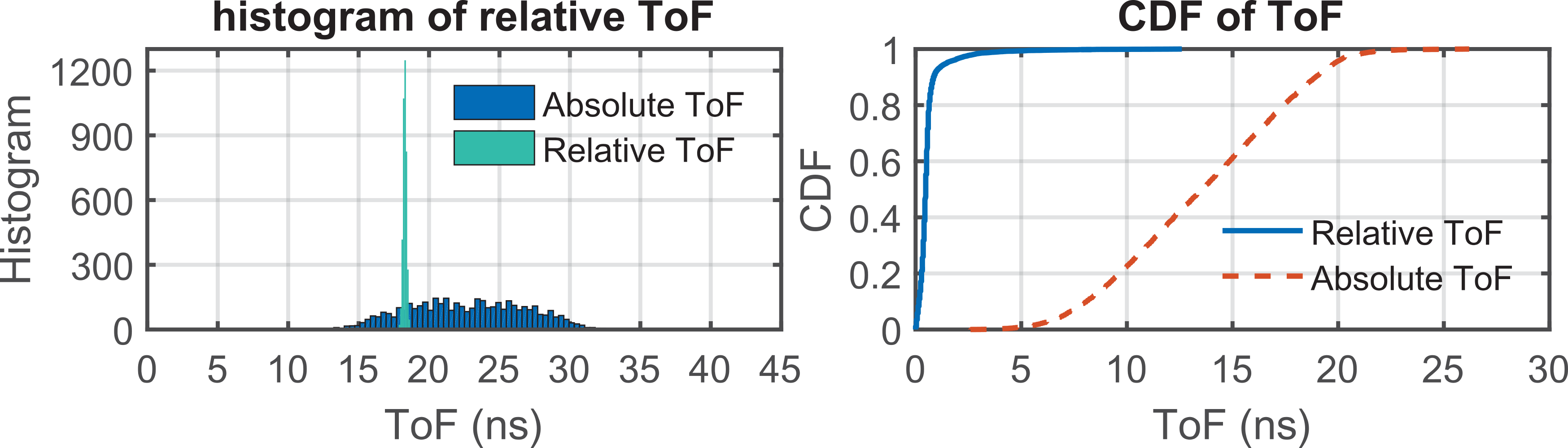 - ToF ($\mathbf{\tau}$). 이것과 Tx-Rx 사이의 길이를 알면 해당 신호의 전파 경로의 범위를 타원형으로 한정지을 수 있다. 이 논문에 따르면 ToF의 해상도는 채널 대역폭에 비례한다.